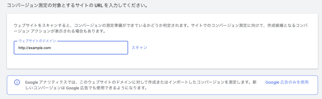 URLをスキャンすると、Googleアナリティクスでは、このウェブサイトのドメインに対して…と表示されます。